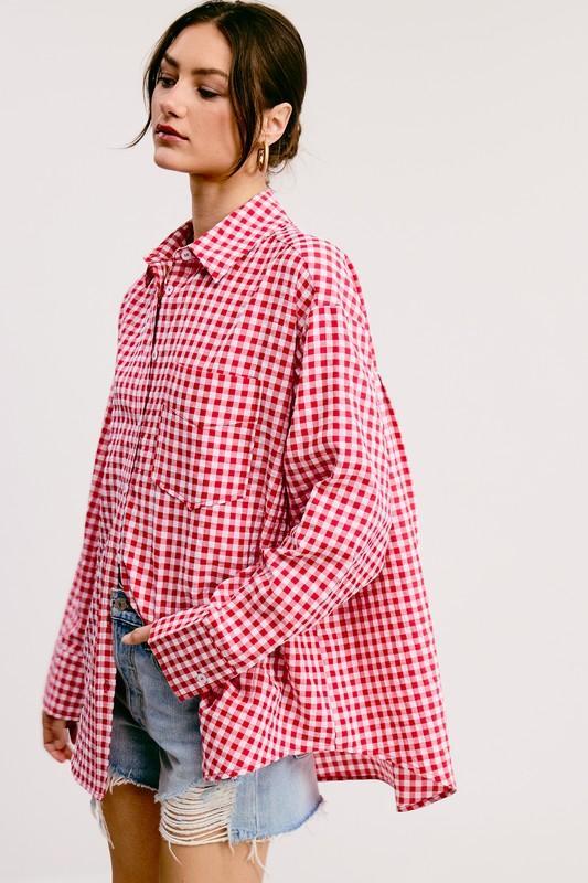 Oversized Gingham Button Down Shirt