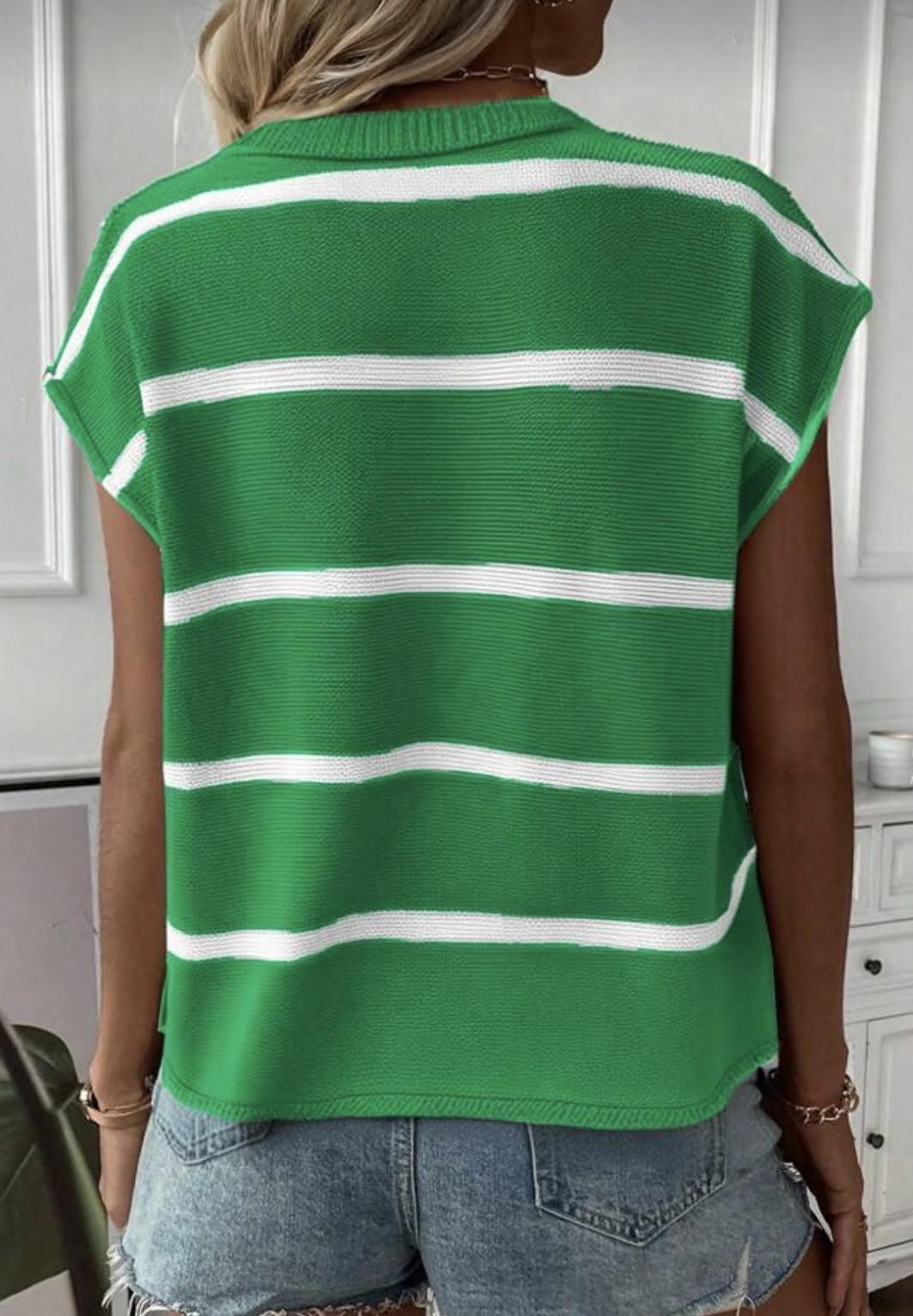 Raw Hem Knit Sleeveless sweater. Drop shoulder with rolled hem.